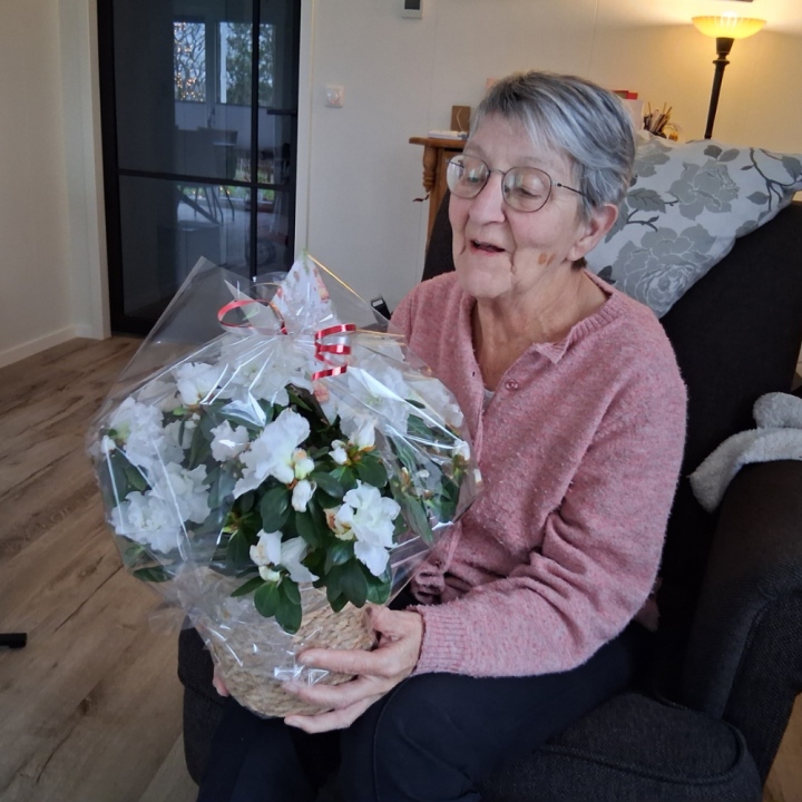 In Haule schreven zowel mevrouw Hop als mevrouw Tabak een kaart voor mevrouw Nicolai, die ziek is en nog herstellende van een operatie. Ze wilden haar graag een verrassing geven om haar een hart onder de riem te steken. Ze ontving een prachtige plant, want dat had ze na een zwaar jaar wel verdiend. Wij wensen mevrouw Nicolai en de andere dames een hele fijne kerst en een gelukkig 2026 toe!